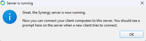 After selecting the server in Synergy, you should see the following message: